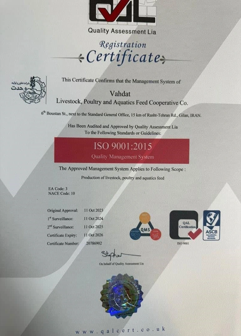 رزومه شرکت تعاونی تولید خوراک دام ،طیوروآبزیان وحدت